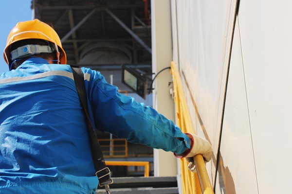 送修完成的電機送達預(yù)熱器頂,維修班長張如山正在進行最終吊裝,高處不勝“暑”,卻難擋海螺人火熱的干勁。(王浩然/攝)