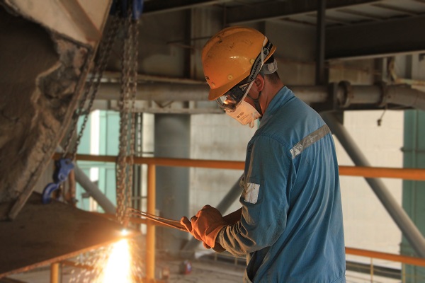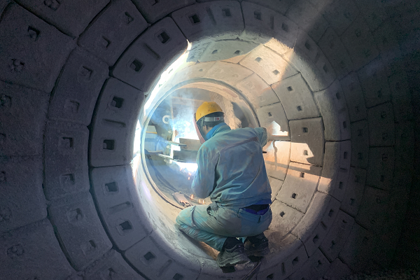 窯檢修現(xiàn)場,機械維修工張紅勝全神貫注地操作著氣割槍,即便得心應(yīng)手,他也始終保持謹慎與專注。(王凱/攝)