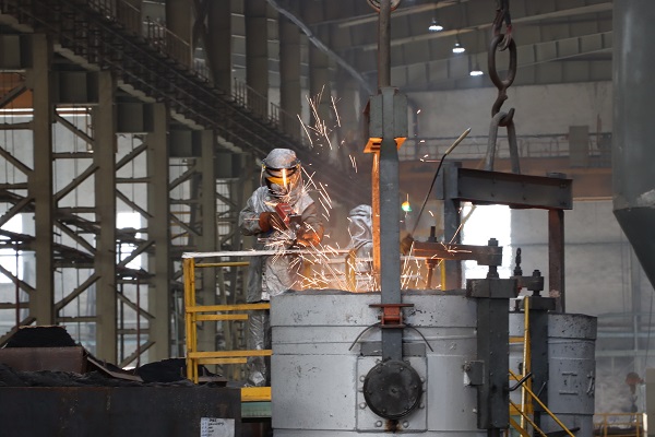 8月17日清晨,海川裝備公司180輥壓機軸承座澆注生產(chǎn)作業(yè)正在緊張有序地進行中,為了保證這個重達近10噸的“大家伙”最終的澆注質(zhì)量,鑄造分廠澆注工程國強正在和工友們進行著最后的測溫工作,厚重的鋁箔防火隔熱服內(nèi),汗水順著皮膚不斷滑落,而他們依舊全神貫注,他說:“鋼包測溫是澆注工序的最后一項重要工作,必須保證每個動作規(guī)范到位,心靜自然涼,專注在手上,也就感覺不到熱了。”(呂韻茁/攝)