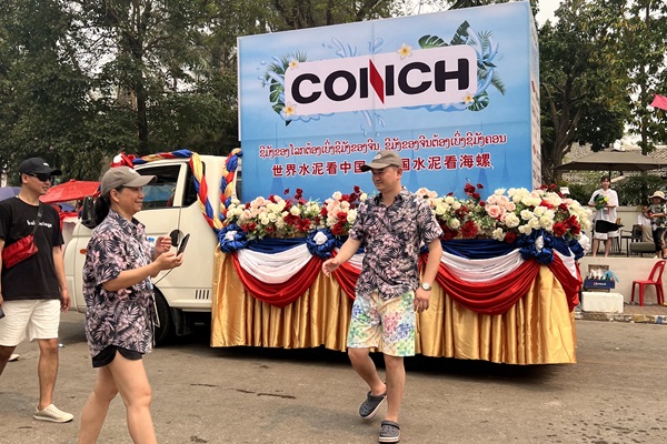 4月14日下午,節(jié)日當(dāng)天,瑯勃拉邦一下就熱鬧了起來(lái),拜佛、浴佛、潑水、栓線(xiàn)、布施、堆沙、放生、游行等各類(lèi)活動(dòng)輪番上演,人們的歡呼聲、掌聲和潑水聲交織在一起,仿佛整個(gè)瑯勃拉邦城都要被人們辭舊迎新的歡樂(lè)氣氛所淹沒(méi)。裝扮著海螺CONCH Logo和佛歷2566年祝福的花車(chē)領(lǐng)頭,60名身穿海螺文化衫的巡游隊(duì)伍慢行著經(jīng)過(guò)瑯勃拉邦著名的法國(guó)街,街邊圍觀的人群熙熙攘攘?!翱烨疲鞘俏覀冎袊?guó)企業(yè)的隊(duì)伍!”一名中國(guó)游客手指海螺水泥游行方隊(duì)激動(dòng)地說(shuō),“我知道你們海螺水泥,在這里能夠看見(jiàn)中國(guó)自己的企業(yè),感覺(jué)很親切,也很自豪。”