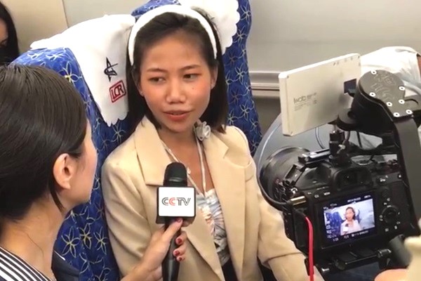 烏灑尼乘坐動(dòng)車(chē)時(shí)接受中央電視臺(tái)的采訪