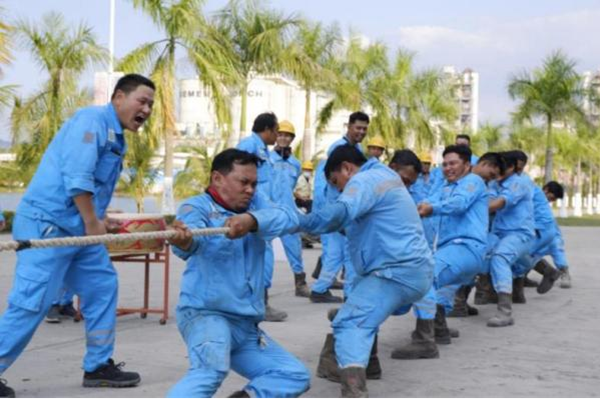 “加油!加油!”“Fighting!Fighting!”“Semangat!Semangat?。ㄓ∧嵴Z(yǔ):加油)”正在進(jìn)行的是中國(guó)印尼兩籍員工共同參與的拔河比賽。音樂(lè)、喝彩、迎風(fēng)飄展的彩旗,匯聚成一片文化交融的歡樂(lè)海洋。