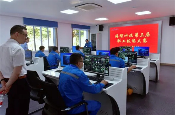 在水泥操作工比賽現(xiàn)場,選手們嚴謹地操作著模擬系統(tǒng),逐步把各項參數調至最優(yōu)值。