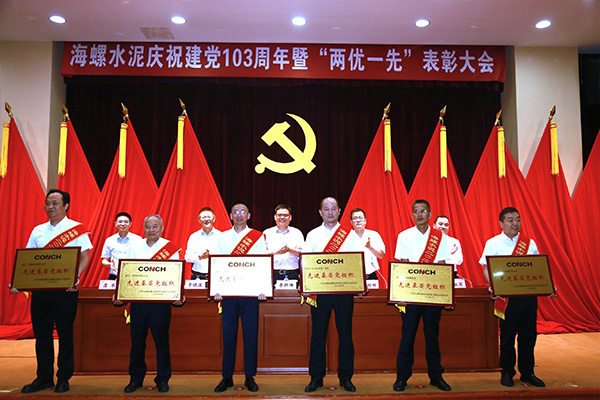 6月27日下午,海螺水泥以現(xiàn)場會+視頻會相結(jié)合的方式,召開了慶祝建黨103周年暨“兩優(yōu)一先”表彰大會,隆重表彰了一批在推動公司高質(zhì)量發(fā)展中涌現(xiàn)出的先進集體和優(yōu)秀個人,激勵廣大黨員和干部職工堅定信心、攻堅克難,為完成年度目標任務(wù),助推集團實現(xiàn)新“雙一”目標貢獻更大力量。