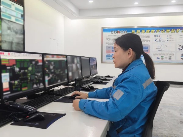 樅陽海螺礦山局控操作工胡玉貞正在進行礦車開采智能把控工作,她說:“數(shù)字化智能礦山系統(tǒng)指揮礦車,就像指揮家在指揮樂隊,工友們在礦場辛勤作業(yè),我用智能化系統(tǒng)為他們提供精準(zhǔn)的開采指導(dǎo),確保每一步都高效有序。”