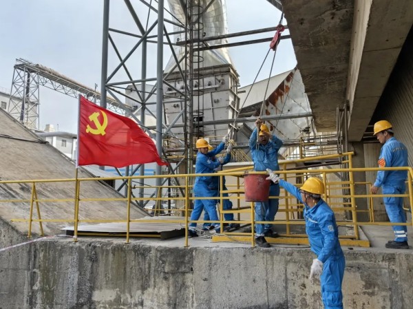 雙峰海螺黨員突擊隊清理篦冷機斜拉鏈地坑積料。他們說:“保持決戰(zhàn)狀態(tài),沖刺目標(biāo)任務(wù),讓鮮紅的黨旗在一線高高飄揚。”