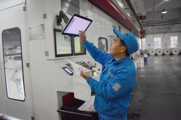 廣元塑品印刷機主操馬強正在核對生產(chǎn)數(shù)據(jù),他說:“這是生產(chǎn)源數(shù)據(jù),每一個數(shù)字都關(guān)乎著產(chǎn)品的質(zhì)量與生產(chǎn)流程的精準(zhǔn)性,馬虎不得。”