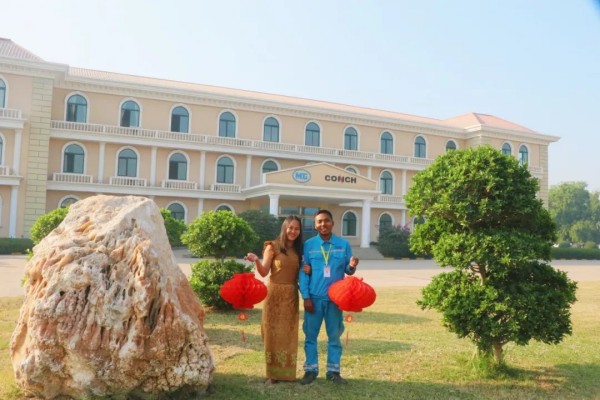 大家好!我是緬甸海螺吞林昂,這是我的妻子蘇桑達(dá),我們都在緬甸海螺工作,這些天公司廠區(qū)內(nèi)掛燈籠、貼福字,到處洋溢著歡樂、喜慶的氛圍,像緬甸過潑水節(jié)一樣隆重。我們在緬甸海螺給大家拜年了,祝大家新春蛇年喜氣揚、工作順利事業(yè)昌!我經(jīng)常聽同事說,中國有一句俗話,“不是一家人、不進(jìn)一家門”,家庭如此、公司也是如此,我相信只有公司發(fā)展好,員工才能生活的更好。作為緬甸海螺大家庭的一員,新的一年讓我們一起努力,祝福海螺未來更加美好!