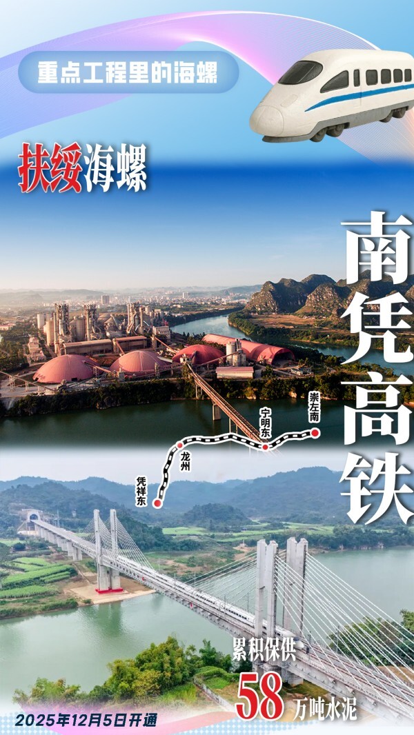 扶綏海螺為南憑高鐵崇左至憑祥段項(xiàng)目建設(shè)累積供應(yīng)58萬噸高品質(zhì)水泥。