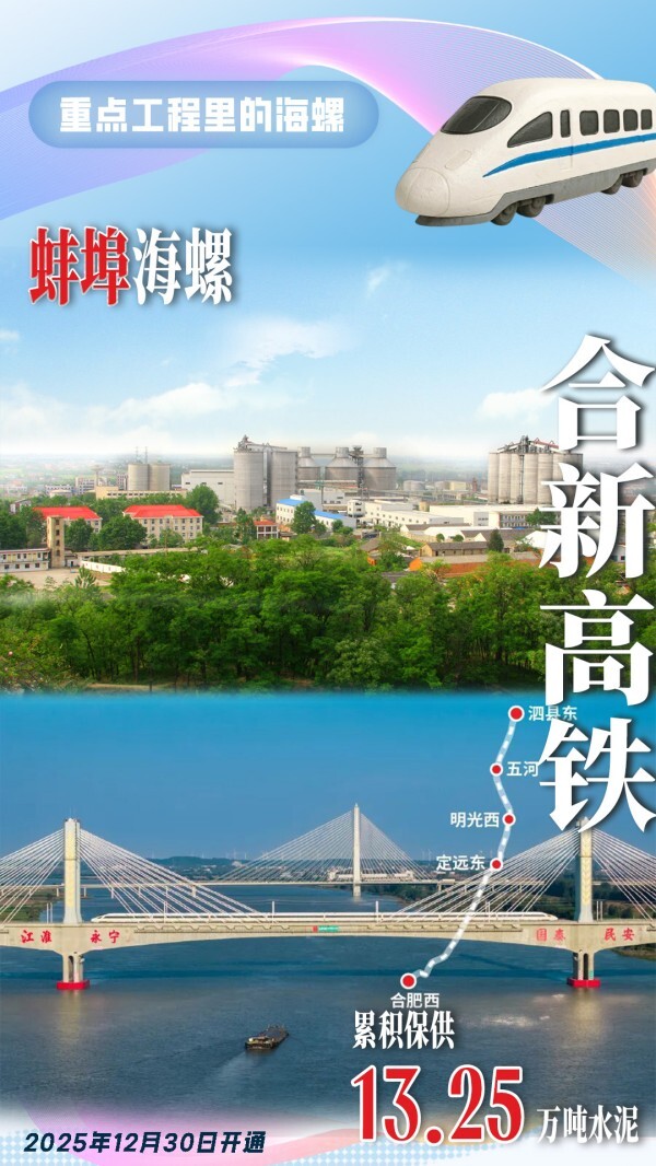 蚌埠海螺為合新高鐵合肥至泗縣段項(xiàng)目建設(shè)累積供應(yīng)13.25萬噸高品質(zhì)水泥。