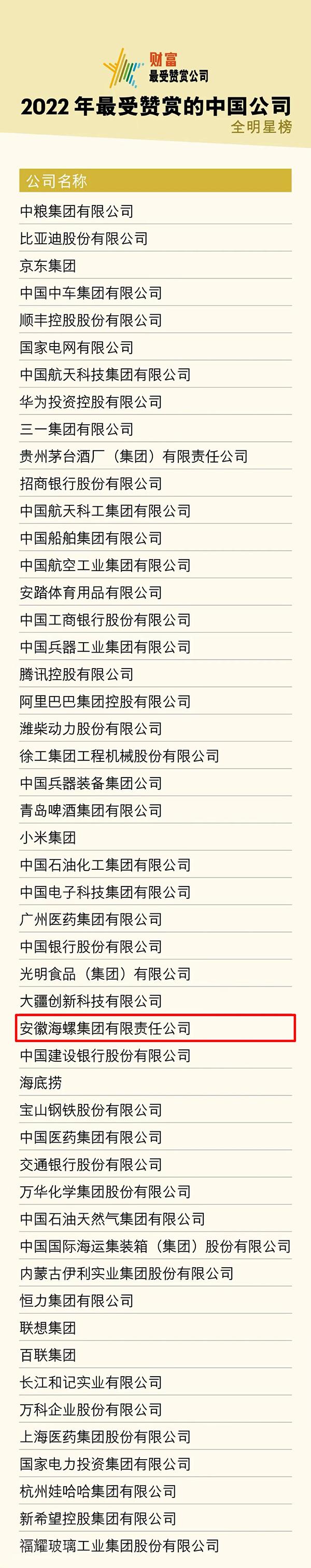 近日,《財(cái)富》(中文版)發(fā)布“最受贊賞的中國(guó)公司”榜單,海螺集團(tuán)名列其中。