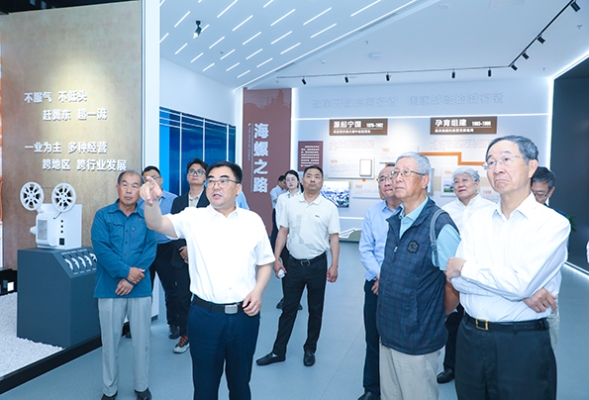 在海螺集團(tuán)展廳,一件件展品、一幅幅圖片、一組組數(shù)據(jù),生動勾勒出海螺集團(tuán)從小到大、由弱變強(qiáng)的奮進(jìn)畫卷。代表團(tuán)一行不時(shí)駐足詢問,深入了解海螺集團(tuán)在水泥制造、新能源、新材料、環(huán)保、數(shù)字經(jīng)濟(jì)、現(xiàn)代服務(wù)貿(mào)易等領(lǐng)域的多元化布局以及取得的豐碩成果。