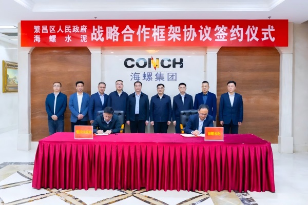 2026年4月13日,海螺水泥與繁昌區(qū)人民政府戰(zhàn)略合作框架協(xié)議簽約儀式在集團(tuán)總部舉行。繁昌區(qū)委書記汪敏,區(qū)委副書記、區(qū)長周偉,海螺集團(tuán)黨委副書記、總經(jīng)理朱勝利,海螺水泥黨委副書記、總經(jīng)理虞水等參加簽約儀式。蕪湖海螺總經(jīng)理王張偉,繁昌區(qū)常務(wù)副區(qū)長王銘華代表雙方簽署協(xié)議。
