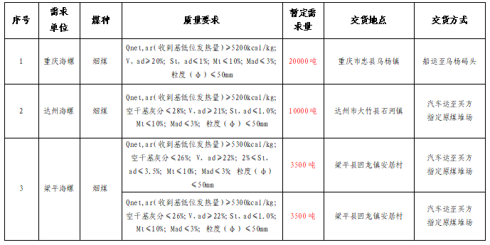 為進(jìn)一步提升煤炭采購招標(biāo)的公平、公正、公開透明性,根據(jù)區(qū)域2021年7月份煤炭需求,現(xiàn)組織開展煤炭采購網(wǎng)絡(luò)招標(biāo),特將招標(biāo)事宜公告如下: