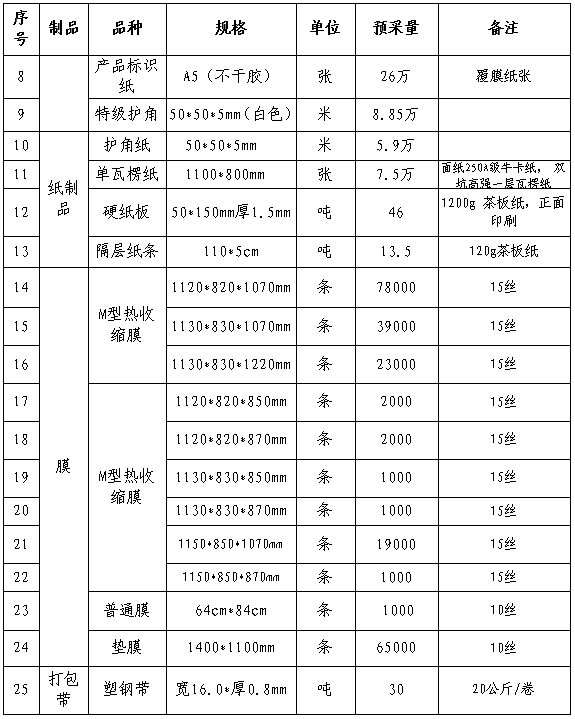 根據(jù)公司生產(chǎn)經(jīng)營計劃,為確保2021-2022年度產(chǎn)品包裝需求;現(xiàn)本著“公開、公平、公正、透明”的原則公開招標(biāo),誠邀經(jīng)營能力較好、產(chǎn)品質(zhì)量合格、保供和服務(wù)能力較強的包裝材料生產(chǎn)單位參加投標(biāo),現(xiàn)將有關(guān)事項公告如下: