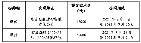 為做好哈密弘毅公司及臨夏海螺9月份煤炭采購(gòu)工作,滿足生產(chǎn)需要,本著“公開(kāi)、公平、公正”的原則,擬對(duì)煤炭供貨進(jìn)行公開(kāi)招標(biāo),現(xiàn)將招標(biāo)采購(gòu)信息發(fā)布如下: