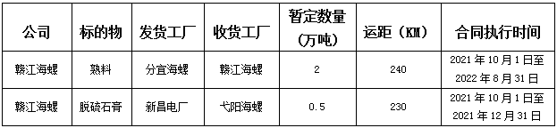根據(jù)生產(chǎn)經(jīng)營需要,江西贛江海螺水泥有限責任公司對分宜海螺至贛江海螺熟料、新昌電廠至弋陽海螺脫硫石膏運輸業(yè)務(wù)進行公開招標,為進一步體現(xiàn)“公開、公平、公正”的原則,增加運輸定價透明度,現(xiàn)發(fā)布公開招標信息,歡迎有運輸能力的運輸單位報名參加此次招標活動,現(xiàn)將有關(guān)事項公示如下: