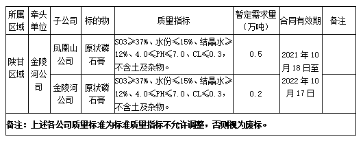 根據(jù)2021-2022年度鳳凰山公司、金陵河公司生產(chǎn)經(jīng)營計劃,現(xiàn)對2021年度原狀磷石膏采購組織招標(biāo),為進(jìn)一步體現(xiàn)公平、公正、公開透明的原則,此次招標(biāo)將在安徽海螺水泥股份有限公司陽光采購平臺公開進(jìn)行,現(xiàn)將招標(biāo)采購信息發(fā)布如下: