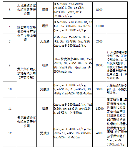 1.煙煤新客戶首次投標(biāo)量不允許超過3500噸(原則上一個整列),無煙煤新客戶首次投標(biāo)量不允許超過5000噸,且均只能投標(biāo)一家海螺公司(2020年1月-2021年10月期間未向海螺水泥貴州區(qū)域形成實(shí)質(zhì)性煙煤、無煙煤供貨的客戶均視為煙煤、無煙煤標(biāo)的投標(biāo)新客戶),原則上投標(biāo)可供量不得小于3000噸,但考慮安龍海螺本次無煙煤僅招標(biāo)2000噸,因此安龍海螺無煙煤投標(biāo)量不予限制。