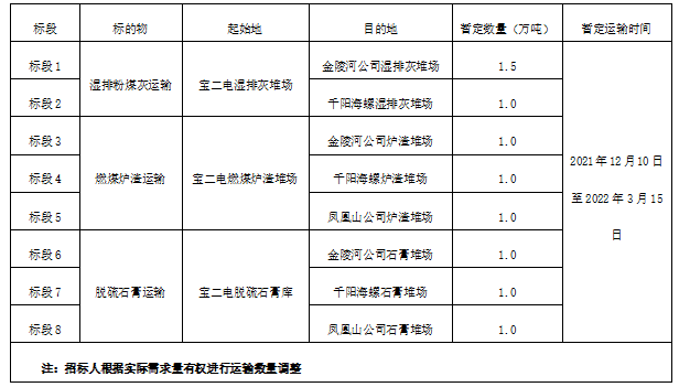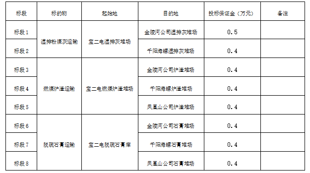 1.標的物:寶雞二電廠濕排灰、燃煤爐渣及脫硫石膏運輸。