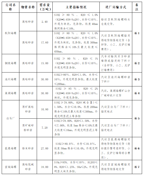 4.為防止串貨,同一貨源地,單一海螺子公司只選取一家投標(biāo)單位中標(biāo)??紤]直供合作,本次招標(biāo)不接受青陽縣華青礦業(yè)發(fā)展有限公司、繁昌縣紅花山金廣礦業(yè)有限公司、繁昌縣順誠礦業(yè)有限公司、安徽佰金礦業(yè)有限公司、蕪湖聚塔新材料有限公司等直供礦點的非直供渠道前來投標(biāo)。