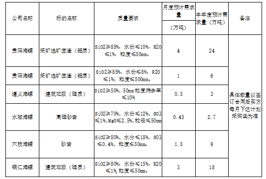 2.5水城海螺準(zhǔn)入條件增加:同一貨源地只允許一家單位參與投標(biāo)。