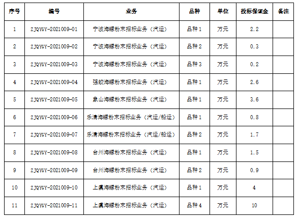 為進一步體現(xiàn)公平、公正、公開的原則,拓寬采購渠道,提高采購質(zhì)量,增強粉末保供安全性。浙江區(qū)域?qū)幉êB?、象山海螺、強蛟海螺、臺州海螺、上虞海螺、樂清海螺六家公司聯(lián)合對2022年一季度水泥生產(chǎn)所需的粉末采購進行公開招標,現(xiàn)將相關事宜公告如下: