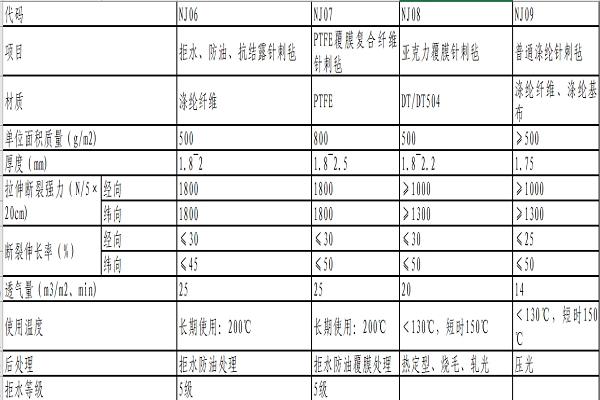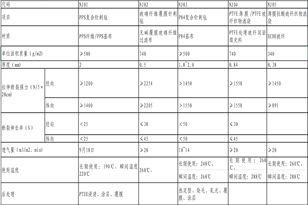 3.濾袋技術(shù)指標