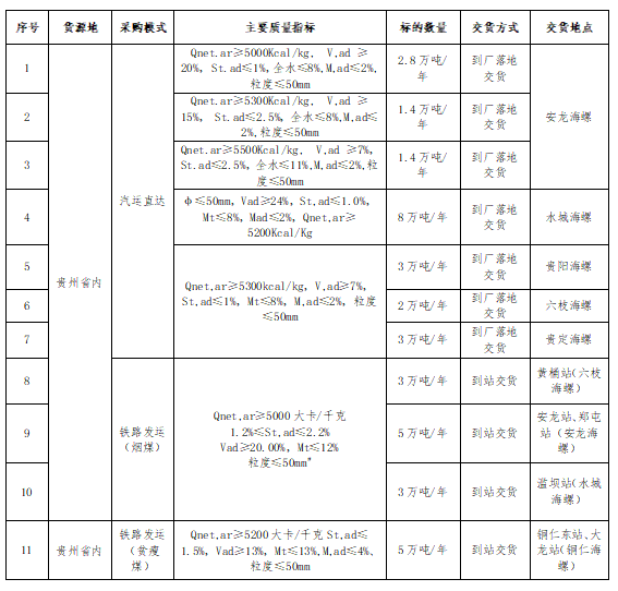 2.投標(biāo)人所提供礦點煤炭生產(chǎn)能力30萬噸/年以上(含30萬噸/年),礦點屬于貴州省內(nèi)資源;
