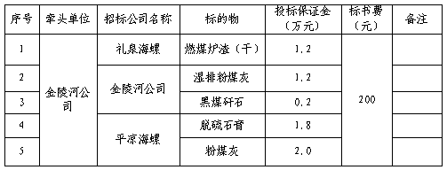 根據(jù)2021-2022年淡季平?jīng)龊B?、禮泉海螺及金陵河公司生產(chǎn)經(jīng)營(yíng)計(jì)劃,現(xiàn)對(duì)2021-2022年淡季部分電廠工業(yè)廢渣采購(gòu)組織招標(biāo),為進(jìn)一步體現(xiàn)公平、公正、公開(kāi)透明的原則,此次招標(biāo)將在安徽海螺水泥股份有限公司陽(yáng)光采購(gòu)平臺(tái)公開(kāi)進(jìn)行,現(xiàn)將招標(biāo)采購(gòu)信息發(fā)布如下: