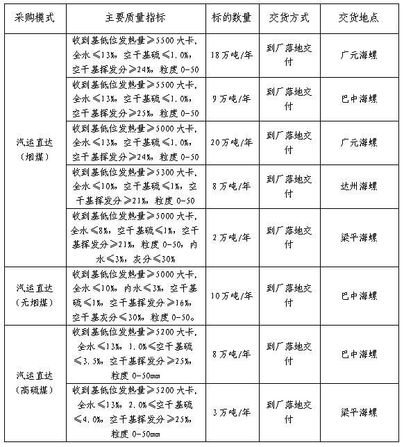 2.汽運直達(高硫煤)定價原則:參照汽運直達(煙煤)/鐵路直達年度長協(xié)綜合到位價格為基準,折算成合同標準熱值標準后,下浮**元/噸(不得低于10元/噸,由投標單位填報)確定當月煤炭供貨價格。