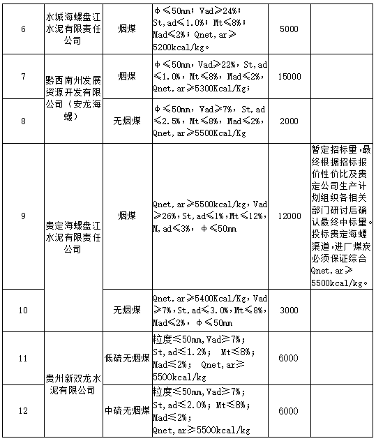 海螺水泥貴州區(qū)域擬對2021年12月21日至2022年1月20日生產(chǎn)用煤炭進(jìn)行公開招標(biāo),選定中標(biāo)單位,現(xiàn)將相關(guān)招標(biāo)事宜公示如下: