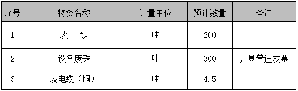 備注:回收商負責(zé)人工、氧氣、乙炔切割;自備吊車、叉車、鏟車、運輸車輛、裝車、工具等;包含清理場地垃圾費用。