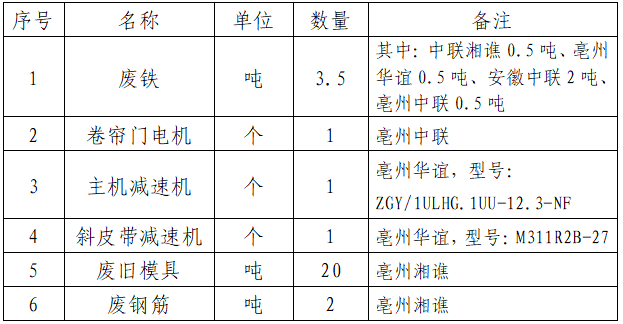 安徽海螺綠色新型材料有限公司擬對(duì)下屬子公司廢舊物資進(jìn)行公開招標(biāo),選定中標(biāo)人?,F(xiàn)將相關(guān)事宜公告如下: