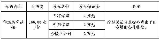 現(xiàn)對(duì)平?jīng)龊B?、千陽海螺和金陵河公?022年華亭煤炭運(yùn)輸組織公開招標(biāo),為進(jìn)一步體現(xiàn)公平、公正、公開透明的原則,現(xiàn)將招標(biāo)信息發(fā)布如下: