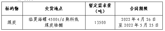 為做好我公司2022年5月份煤炭采購工作,滿足生產(chǎn)需要,本著“公開、公平、公正”的原則,擬對煤炭貿(mào)易渠道供貨進行公開招標,現(xiàn)將招標采購信息發(fā)布如下: