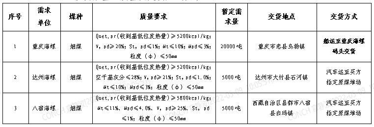 達(dá)州海螺報(bào)價(jià)要求為一票制汽運(yùn)至買方原煤堆場交貨價(jià)(含13%增值稅),賣方負(fù)責(zé)到廠卸貨到買方指定地點(diǎn);