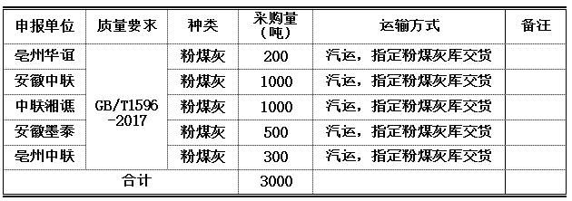 3.粉煤灰計(jì)劃采購(gòu)量0.3萬(wàn)噸,具體如下:
