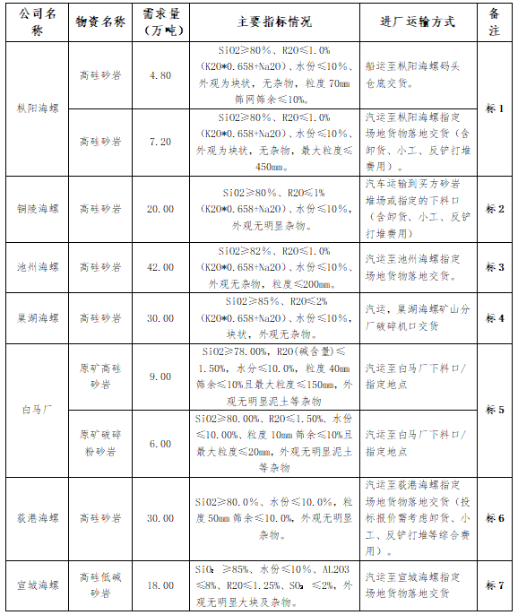 2.本次投標(biāo)除銅陵海螺接受含鵝卵石的物料外,池州、樅陽、巢湖、荻港、白馬、宣城海螺所有報(bào)價(jià)均不接受含鵝卵石物料。
