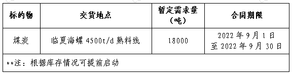 為做好我公司2022年煤炭采購(gòu)工作,滿(mǎn)足生產(chǎn)需要,本著“公開(kāi)、公平、公正”的原則,擬對(duì)煤炭貿(mào)易渠道供貨進(jìn)行公開(kāi)招標(biāo),現(xiàn)將招標(biāo)采購(gòu)信息發(fā)布如下: