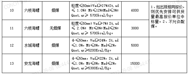 1.煙煤新客戶首次投標(biāo)量不允許超過3500噸(原則上一個整列),無煙煤新客戶首次投標(biāo)量不允許超過5000噸,且無論是煙煤還是無煙煤新客戶均只能投標(biāo)一家海螺公司(2020年8月至2022年8月期間未向海螺水泥貴州區(qū)域形成實質(zhì)性煙煤、無煙煤供貨的客戶均視為煙煤、無煙煤標(biāo)的投標(biāo)新客戶),原則上各標(biāo)段投標(biāo)可供量不得小于3000噸,但考慮貴定海螺本次中硫煙煤標(biāo)段僅招標(biāo)2000噸,貴定海螺中硫煙煤標(biāo)段投標(biāo)可供量不得小于2000噸。