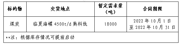 為做好我公司2022年煤炭采購工作,滿足生產(chǎn)需要,本著“公開、公平、公正”的原則,擬對(duì)煤炭貿(mào)易渠道供貨進(jìn)行公開招標(biāo),現(xiàn)將招標(biāo)采購信息發(fā)布如下: