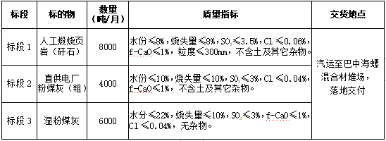 2.投標(biāo)人需具有較強的保供能力,標(biāo)段1月供貨能力不低于0.5萬噸,標(biāo)段2不設(shè)置最低供貨量,標(biāo)段3月供貨能力不低于0.3萬噸。同時,為維護(hù)直供關(guān)系,貿(mào)易渠道貨源不能為川煤華榮公司下轄嘉川電廠、代池壩電廠及南江煤電公司粉煤灰資源。