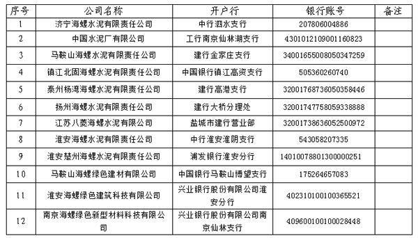 海螺水泥江蘇區(qū)域下屬十二家子公司參與招標(biāo),具體單位及聯(lián)系人如下: