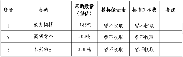 根據(jù)高鋁磚及堿性磚分廠2023年10-12月份產(chǎn)品生產(chǎn)計劃,結(jié)合前期麥芽糊精、高鋁骨料、粘土等3類原材料合同執(zhí)行及庫存消耗情況,為保證生產(chǎn)所需原材料有序銜接,同時進(jìn)一步降低采購成本,現(xiàn)本著“公開、公平、公正、透明”的原則公開招標(biāo),誠邀經(jīng)營資質(zhì)能力較好、保供和服務(wù)能力較強的單位參加投標(biāo)?,F(xiàn)就招標(biāo)相關(guān)事項公示如下: