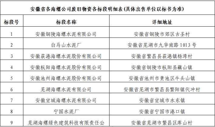 2.出售數(shù)量:以安徽省內(nèi)區(qū)域各海螺公司實際過磅及點數(shù)數(shù)量為準(zhǔn)。