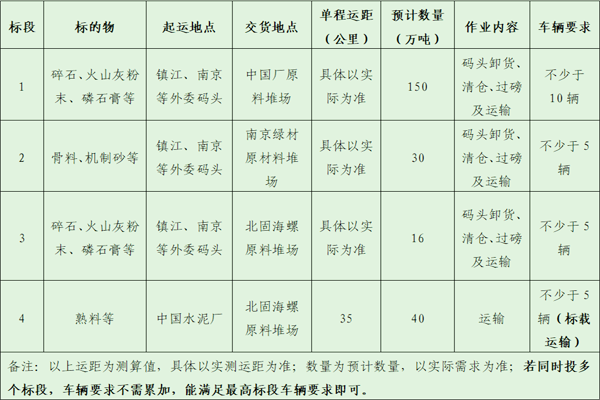 北固海螺擬委托安徽?;酃溈萍加邢薰緦χ袊鴱S、北固碼頭原材料運輸及北固熟料運輸項目進行公開招標,選定中標人?,F(xiàn)將相關事宜公告如下: