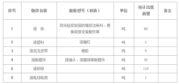 根據(jù)公司現(xiàn)場實際情況,本著“公開、公平、公正、誠實信用和競爭、擇優(yōu)”原則,濟寧海螺水泥有限責任公司擬開展廢舊物資公開招標,歡迎具備條件的單位參加,現(xiàn)將有關事項公示如下: