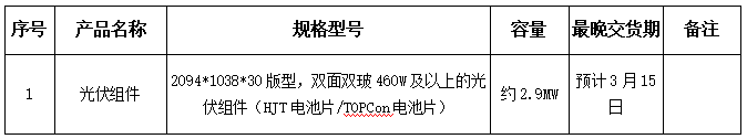 1、招標(biāo)物資信息:雙玻光伏組件。