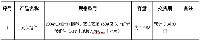1、招標(biāo)物資信息:雙玻光伏組件。